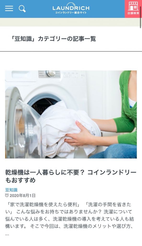 洗濯の際に役立つ豆知識の記事が多く掲載