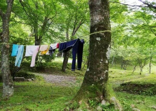 山にあるキャンプ場の場合は寒暖差が激しいので、日中に洗濯物を干し夕方には取り込んでしまうと夜露で濡らさずに済みます。