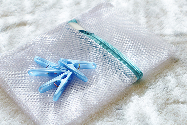 ▽洗面ボール(洗面台の蛇口下に設置してある水を受ける容器)にぬるま湯を張り、そこに中性洗剤を溶かし、ネットに入れた上着をやさしく押し洗い