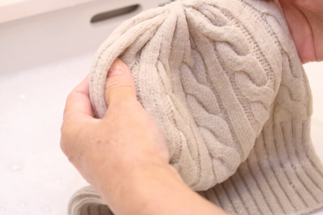 洗い終わったら脱水をします。手洗いの場合は、タオルに包んでやさしく水気を取ります。洗濯機の場合は、脱水時間を短くして型崩れを防ぎましょう。